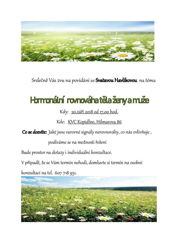 Úvod > Akce v MZ > Hormonální rovnáha těla ženy a muže - povídání se Svatavou Havlíkovou